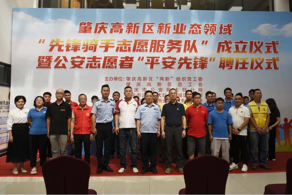 肇庆高新区成立“先锋骑手志愿服务队”。