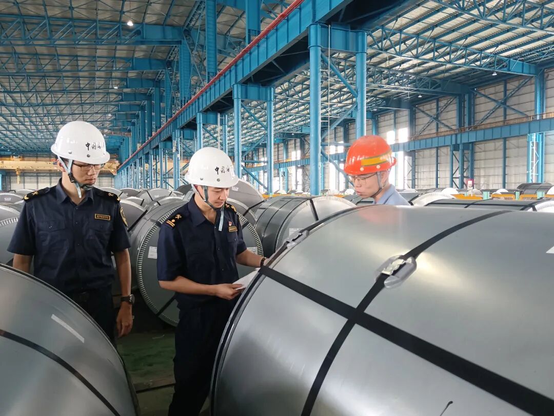 湛江海关关员查验出口钢卷。车斯朗 摄