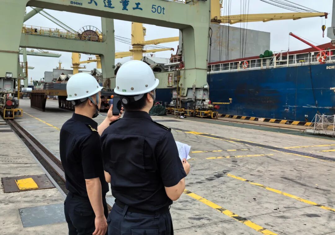 湛江海关关员在船边监管出口连铸钢材。刘锦堂 摄