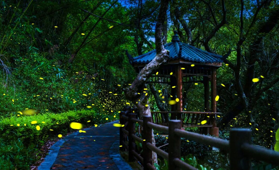 龙溪栈道萤火虫基地无数萤虫飞舞,
