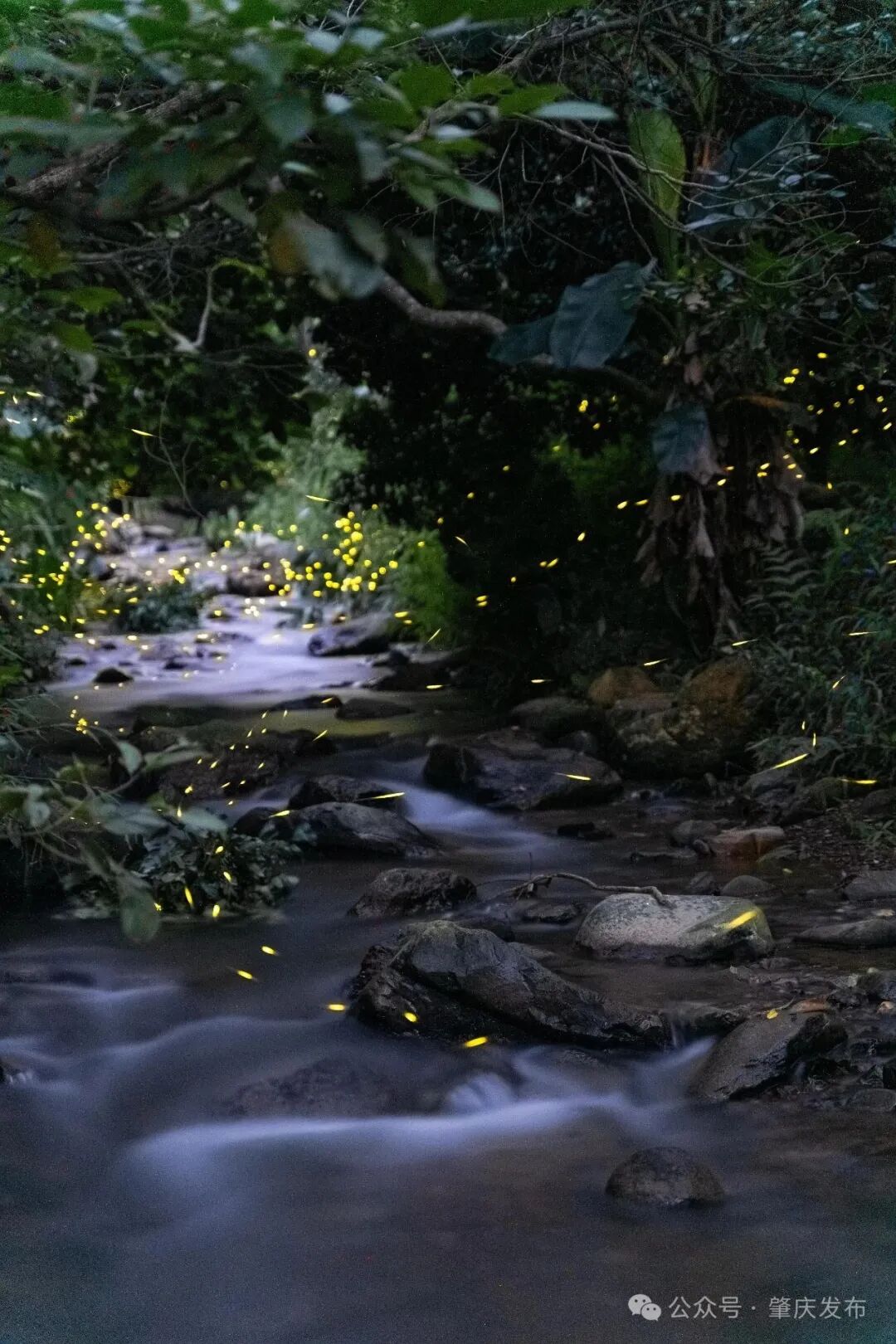 △点点萤火伴着潺潺流水,龙溪栈道犹如美轮美奂的童话世界。肇庆发布特约摄影师 梁亮 摄