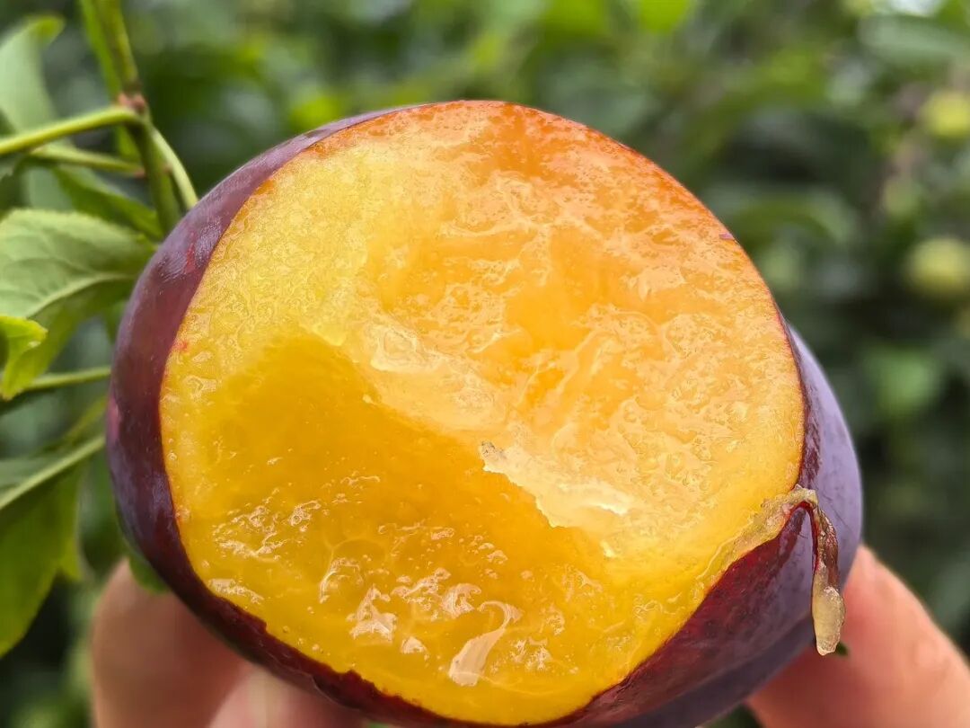 随手摘下一颗台湾红李,轻轻擦去外层白霜,紫红色的果皮透着光泽。咬上一口,金黄剔透的果肉鲜嫩多汁,清甜绵密的汁水瞬间在口中散开,让人回味无穷。微风拂过,空气中弥漫着红李独有的果香,与果园里的草木清香交织在一起,令人心旷神怡。