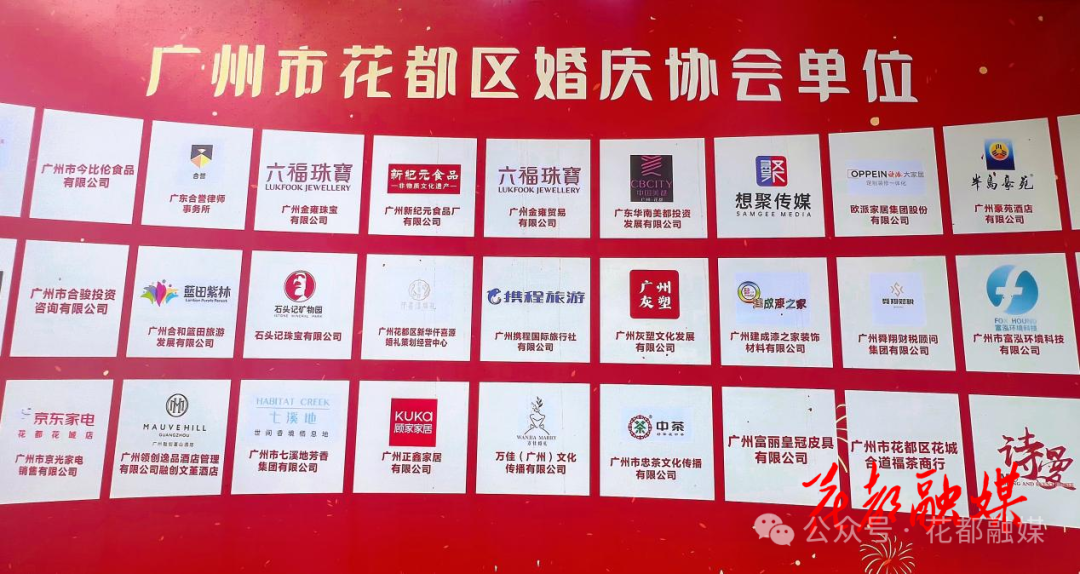 当天,广州市花都区婚庆协会正式扬帆启航。首批34家会员单位涵盖珠宝、酒店、汽车、地产、文旅、婚庆等全产业链,其中有深耕本土的老字号,也有全国知名的连锁品牌,标志着“婚庆+”产业体系初步成型。