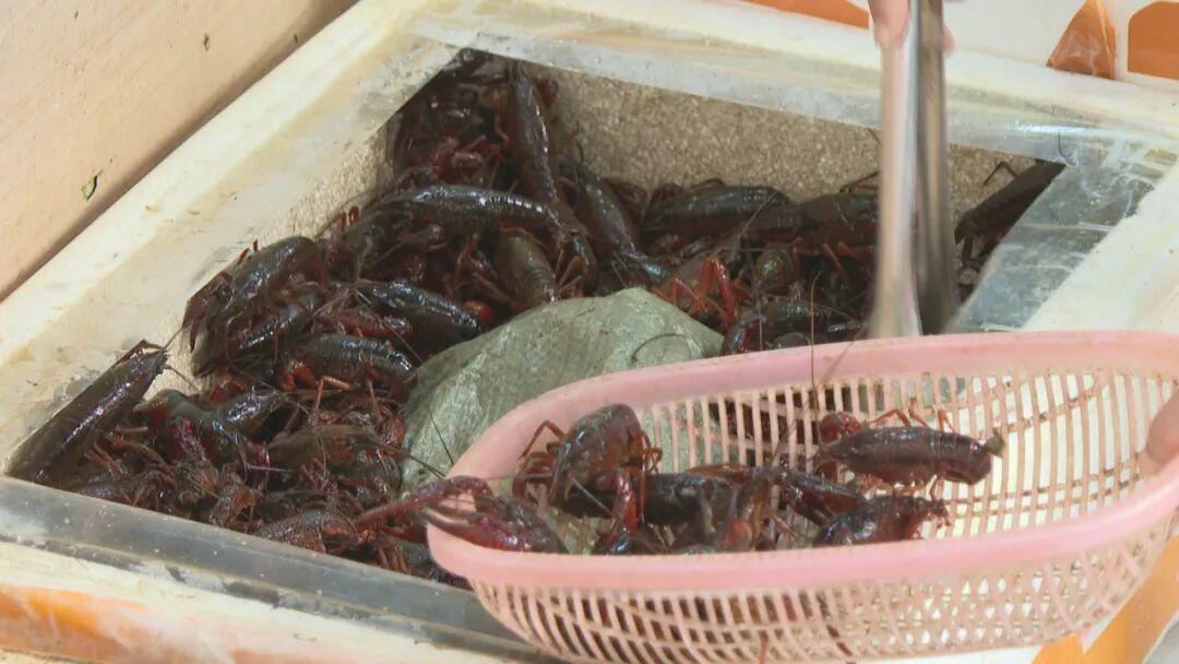 海鲜档档主于女士说道,每年端午节前后是小龙虾的当季,相对来说出货量会比较大,往年一般都能卖出200—300斤,今年销售量就差一点。