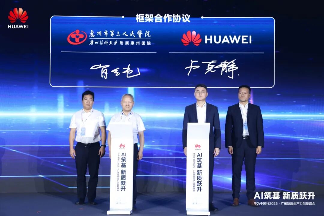 2025年5月15日,以" AI 筑基,新质跃升"为主题的华为中国行2025·广东新质生产力创新峰会在惠州举办,会议邀请了中医药广东省实验室科技研发部部长潘胡丹、广东省第二人民医院院长瞿红鹰、惠州市第三人民医院党委书记肖纯等业界专家,聚焦人工智能技术驱动下的数字经济与新基建发展进程,探讨智能时代产业转型趋势,分享最佳实践。