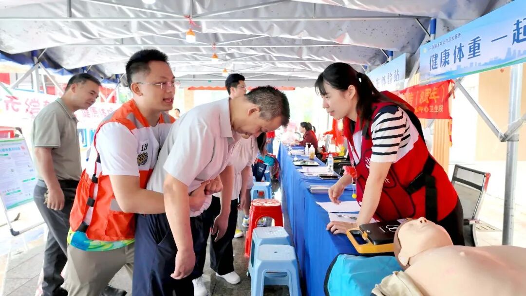 1活动现场设置了12个公卫特色健康摊位,形成“健康市集”,包括:国家基本公卫服务咨询区、体重管理专区、慢性病防控专区、妇幼健康小屋、中医养生体检站、急救技能实训角、疫苗接种咨询专区、健康膳食工坊、家庭医生签约咨询专区、泌尿专科咨询区等。活动邀请了南医五院、区妇幼保健院、区疾控中心等医疗机构权威专家团队,结合农村生活场景,融入真实案例与互动问答,用老百姓听得懂的话,讲清楚怎样管理体重、控制血压血糖、预防呼吸道传染疾病等,让健康知识真正“走进千家万户”。