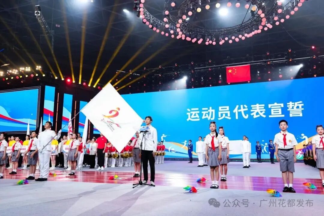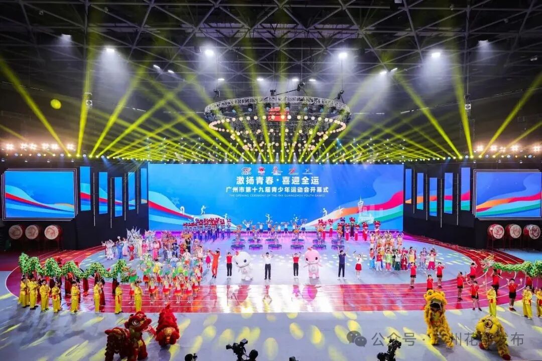 在运动员、裁判员代表宣誓后,各区青少年代表联袂献上精彩纷呈的体育文艺展演,通过巧妙融入岭南传统文化与现代科技元素,充分展现中国文化、湾区风采、广州特色和青少年活力。