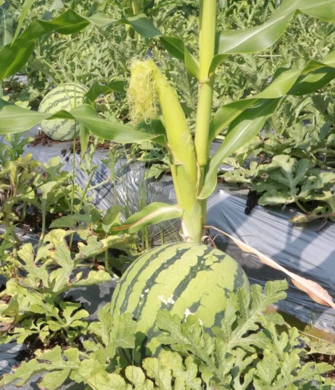 当前农场种植的品种是美都西瓜,属中早熟品种,因其皮薄汁多、甜份好、个头适中,深受消费者喜爱。莓莓星人农场负责人卢嘉威介绍:“西瓜地里采用套种玉米的种植模式,既节约了土地资源,也提高了生产效益,一块地能同时实现了双收益。”