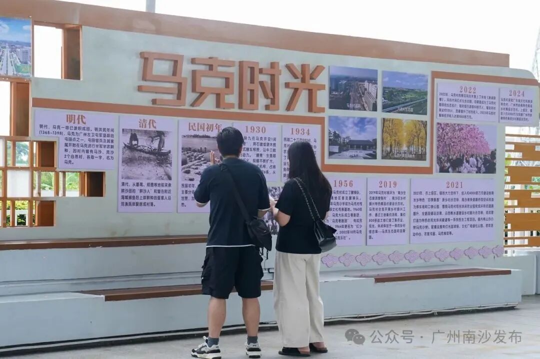 设有“马克时光”景墙和文化广场,“马克时光”景墙结合老照片,从明代马克村的起源娓娓道来,展现了马克村从明代淤积成田发展成集现代工业、农文旅融合发展等一体的广东省文化和旅游特色村的蜕变。
