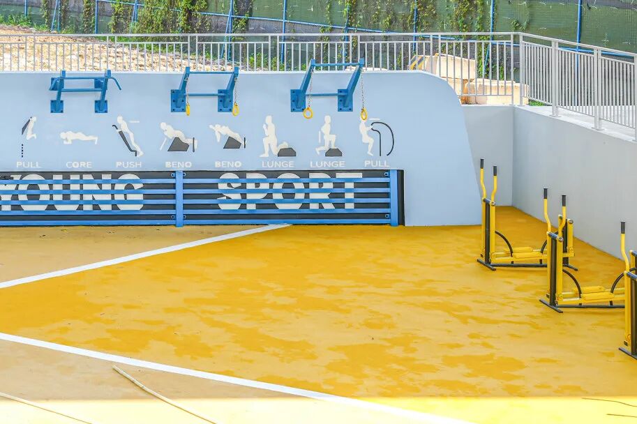 适合12岁以上的居民,设有单人平步机、智能踩踏车、卧式自行车等运动设施,篮球场、网球场亦将陆续建成开放。