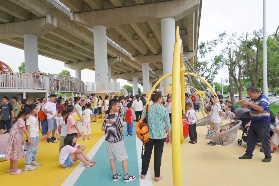 “这个公园真的很不错,免费开放,在桥底下还不会很晒。小朋友喜欢玩这些游乐设施,我们家长带娃也能轻松很多。”附近的居民麦小姐表示。