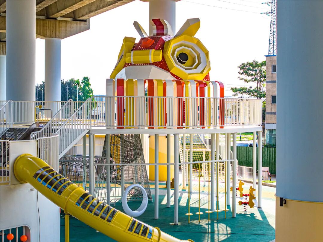 马克村桥下公园深挖马克村的“醒狮文化”,将水波纹和醒狮动作元素融入到场地设计中,更化作滑梯与攀爬网,打造醒狮主题游乐设施。让传统文化在孩童的欢笑中焕发新生。同时,充分融入儿童友好理念,从滑梯到攀爬架,每一个游乐区域都结合儿童的喜好和安全需求,让儿童在玩耍时,感受安全与快乐。