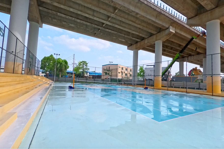 马克村是东涌镇“百千万工程”打造的首批典型村,现在马克村的“美食”“研学”“赏花”场景都比较出圈,但还缺少一个能让大人小孩都喜欢的游玩场所。因此,东涌镇充分利用高架桥底约9000平米的“废弃空间”,把荒废桥底变成“多合一”宝藏空间,因地制宜打造了一个集健身、休闲、玩耍等功能于一体的桥下公园。