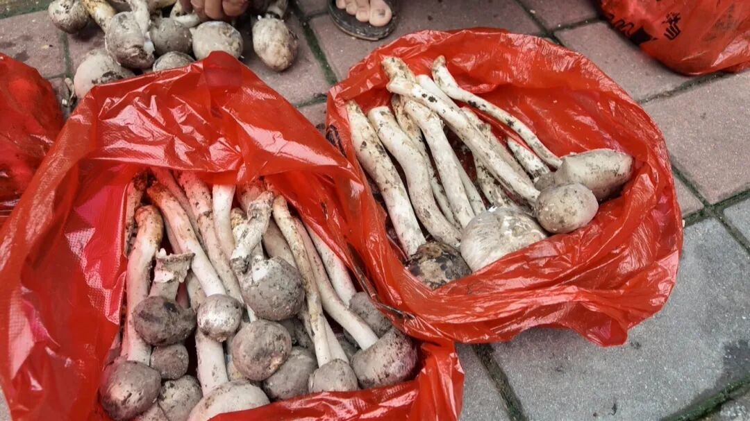 我每天凌晨3点钟就去山上采摘松菌,今年产量比往年少,像这朵开伞的松菌40元一斤,菌珠就是60元一斤,邮寄到广州、佛山一带,每天都很畅销。