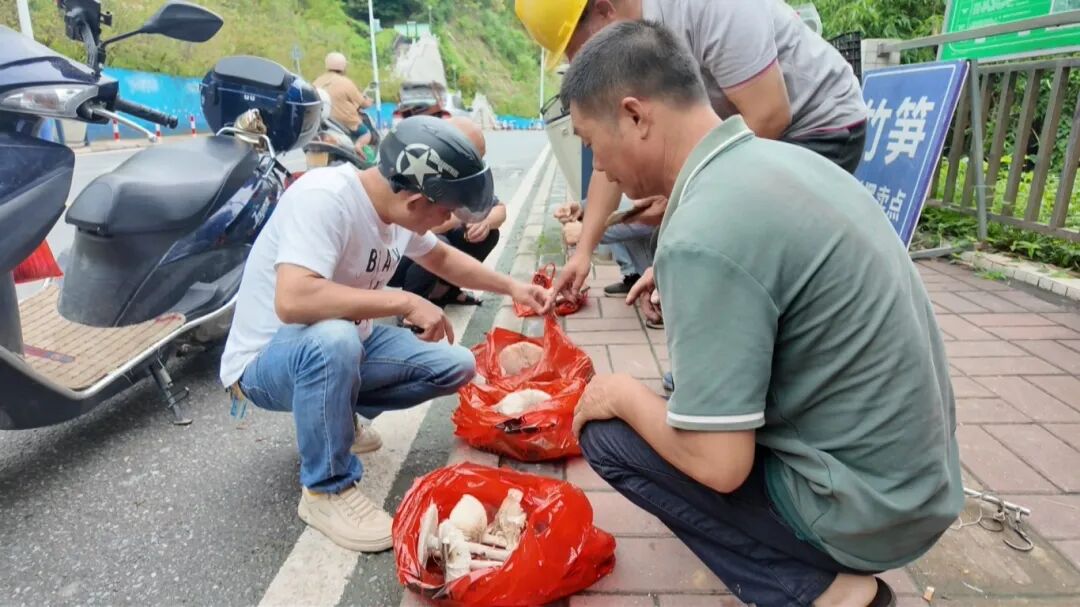 市民陈女士与朋友一早来到土特产临时摆卖点,购买了新鲜的松菌邮寄给亲朋好友品尝,销售现场的松菌供不应求。坑口镇大同村村民冯肇泉是采菌能手,每年他仅靠采摘松菌销售就能增加收入2万多元。他表示,松菌一年有两到三造,今年第一造已经持续生产10多天了,产量高峰期在前几天,高峰时交易市场每天交易1000多斤,现在已接近尾声,今天早上市场上300多斤松菌已销售一空。