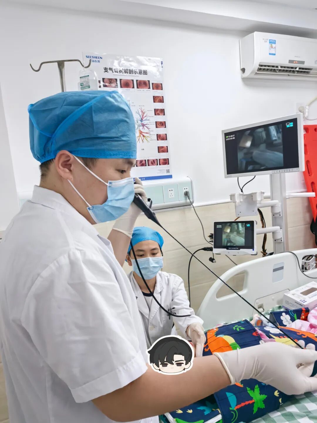 面对如此紧急的情况,及时且精准的医疗干预刻不容缓。儿科邓国雄副主任医师带领的支气管镜团队,迅速采取了支气管镜肺泡灌洗这一高效治疗手段。