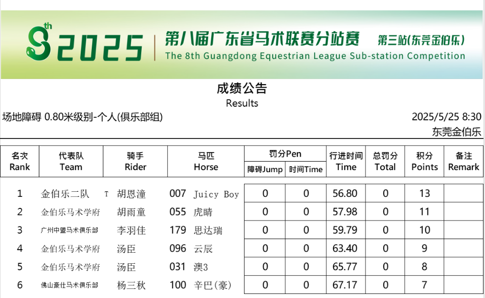 5月24日至25日,2025 年第八届广东省马术联赛分站赛第三站在东莞金伯乐马术学府成功举行。本次赛事由广东省马术协会主办,吸引了全省17家俱乐部的209匹骏马、430对人马组合齐聚东莞,为观众带来了一场精彩绝伦的马术盛宴。