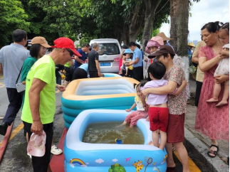 家长带着孩子洗龙船水,祈求孩子快高长大、聪明伶俐