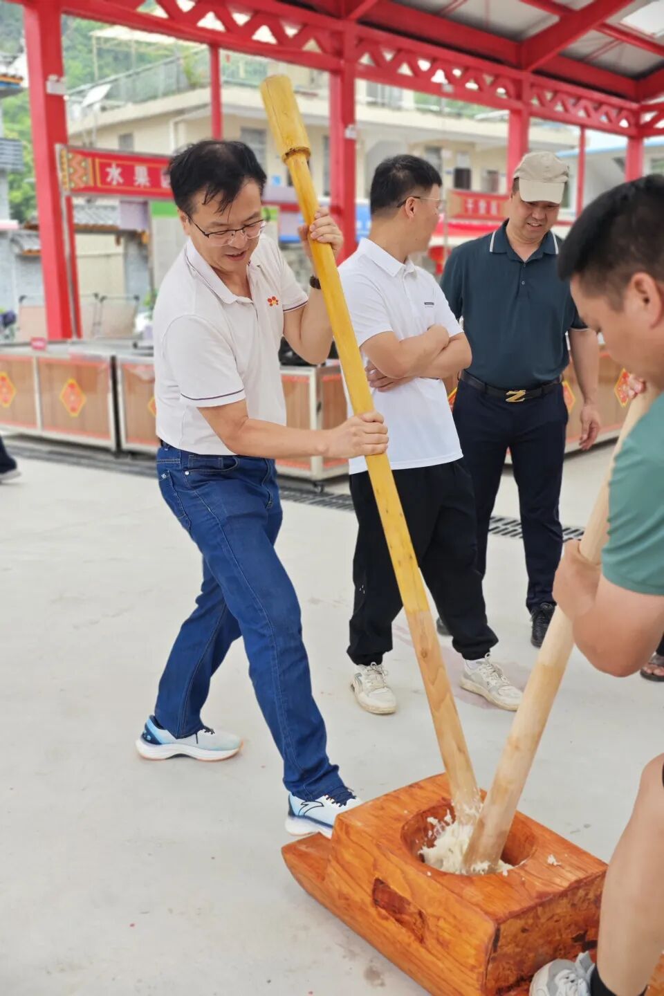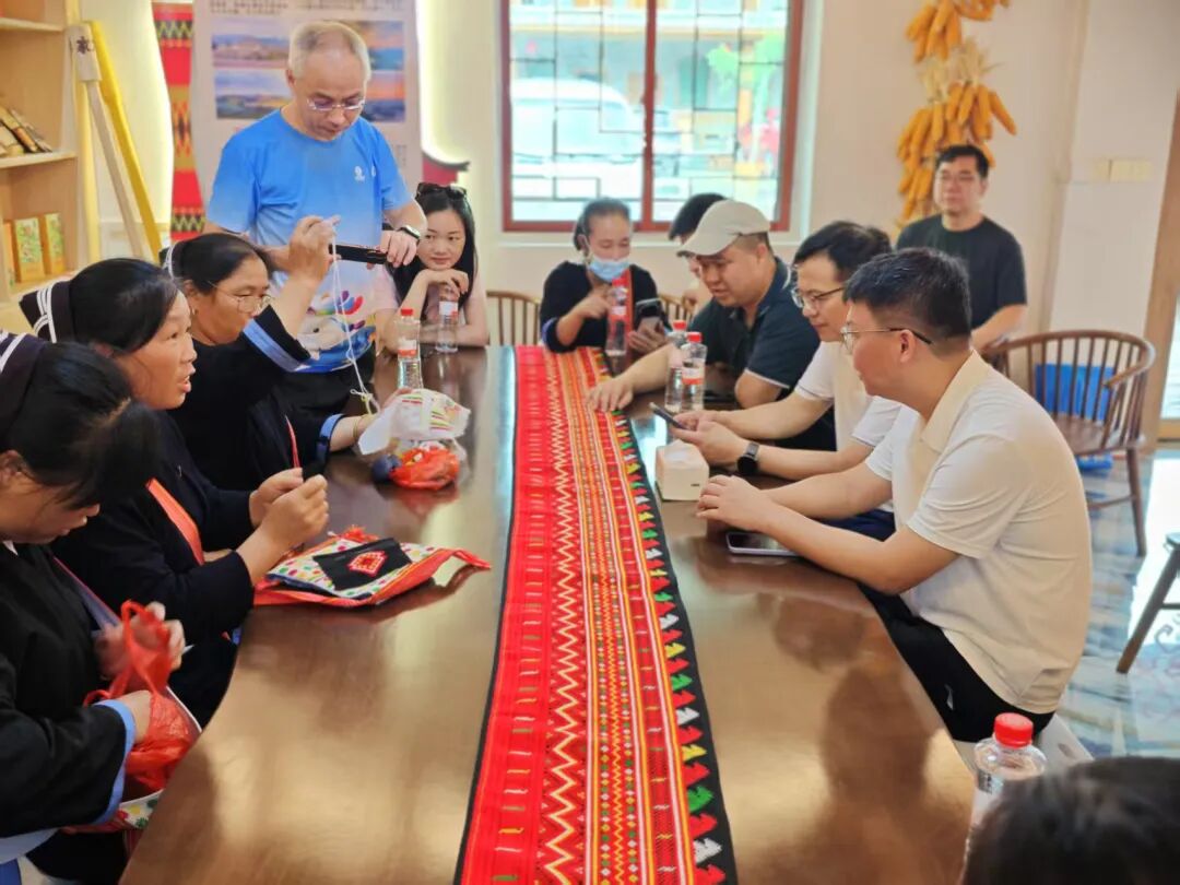 结束连州市行程,活力训练营来到连南瑶族自治县,在广州社联持续开展对口帮扶工作的三排镇南岗村,村支部率领村民们,为大家展示了丰富多彩的瑶族传统节庆体验活动,一幅春天瑶族同胞开耕的画卷展现在眼前。三排镇驻镇帮镇扶村工作队队员、南岗村第一书记陆景介绍了村支部通过乡村振兴政策,整合闲置的民居物业,打造了“瑶家大院”民宿项目,通过合作社运营的形式,大大增加了村民的收入,又修缮保护了瑶族民居,得到了村民的认可。在农贸市场体验极具当地特色的瑶族糍粑手工制作,在美丽圩镇客厅参观当地瑶绣工坊,亲身体验瑶族传统刺绣技艺。在瑶乡的夜晚,大家围坐长桌,欣赏国家级非物质文化遗产——瑶族长鼓舞等特色表演,共叙汉瑶并肩奋斗,创造美好幸福生活的田园佳话。