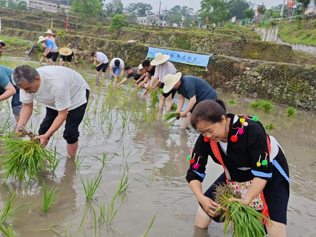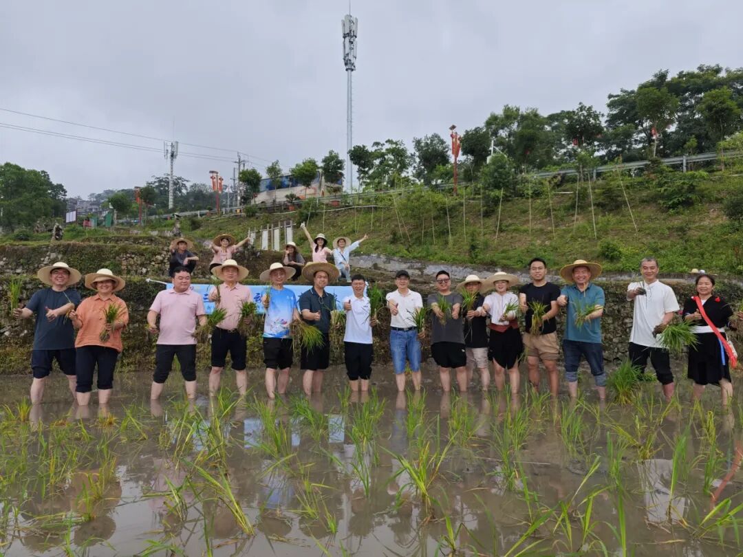 在连南学习期间,结合广州社联和广州市社会组织文化传播协会发起的“瑶寨梯田领种计划”,学员们参与瑶寨春耕插秧活动。现挂职连南瑶族自治县委常委、副书记肖向文带队下田,与农技人员共同指导学员们进行水田插秧。春雨中,学员们卷起裤脚,走进田间,一手一手种下青青秧苗,也种下了丰收的期望。广州社联副秘书长、市社会组织文化传播协会副会长王俊介绍道,自2021年9月,广州社联首次来到三排镇南岗村,就与这里的山水结下了深厚的情谊,从教育帮扶在三排镇中心学校建立工作站,到种茶树、种泡桐树绿美三排,再到联合推广“瑶寨梯田领种计划”,广州社联与广州社会组织已经数十次踏入这片土地,一起见证了南岗村多元化产业发展,亲身体验到通过“百千万工程”项目,公共服务供给增加,社区文化活动日益丰富,农民的收入实际增加。结合“体验+赋能”,广州社联正通过开展文旅推广、梯田认种、生态农产品订购等形式,让新阶人士和社会组织参与连南乡村全面振兴。