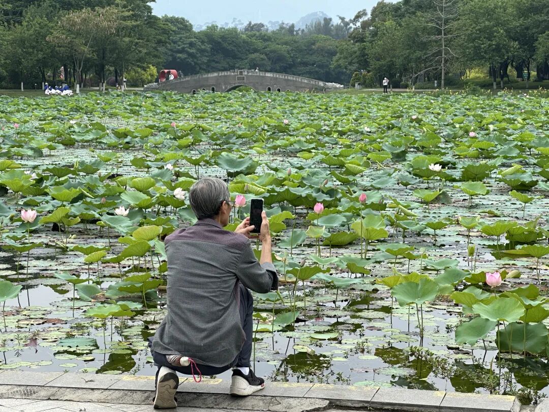 在牌坊公园,市民在欣赏荷花。以上所有图,肇庆市融媒体中心记者 杨乐祺 摄