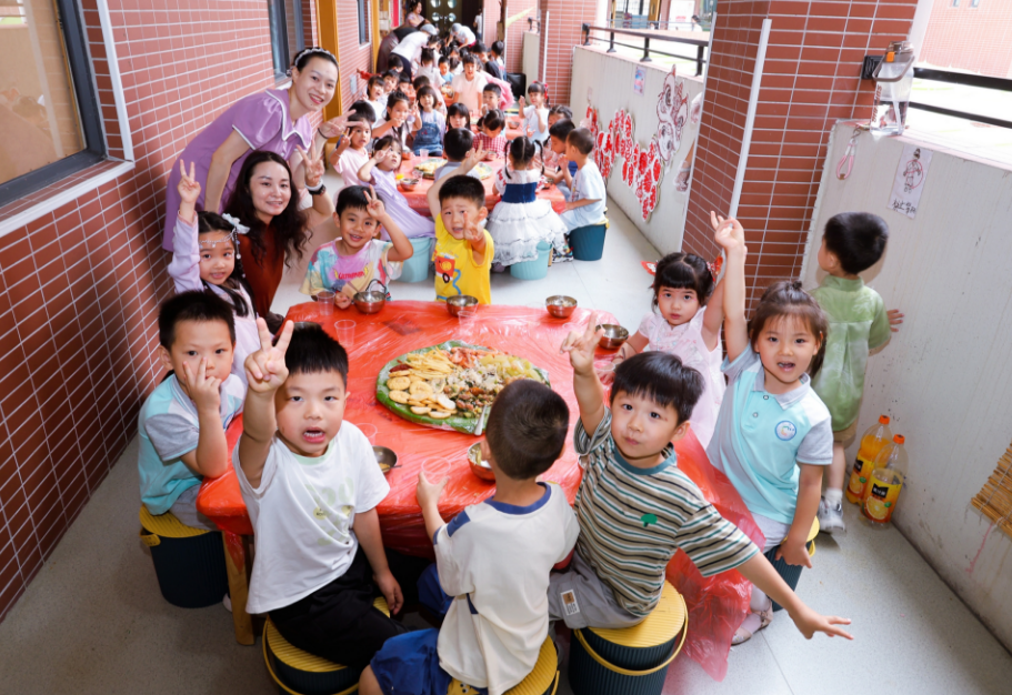 活动当天,洛浦街广钢幼儿园变身欢乐海洋。孩子们自主策划并参与趣味游戏,在欢声笑语中锻炼协作能力;沉浸式观看动画电影,于光影世界中感受童真与美好;充满创意的“赛龙舟”游戏,让孩子们手持彩舟模型,在赛道上你追我赶,体验端午民俗魅力;别具特色的“龙船饭”共享环节,孩子们围坐品尝传统美食,在美味中感知传统文化的深厚底蕴。