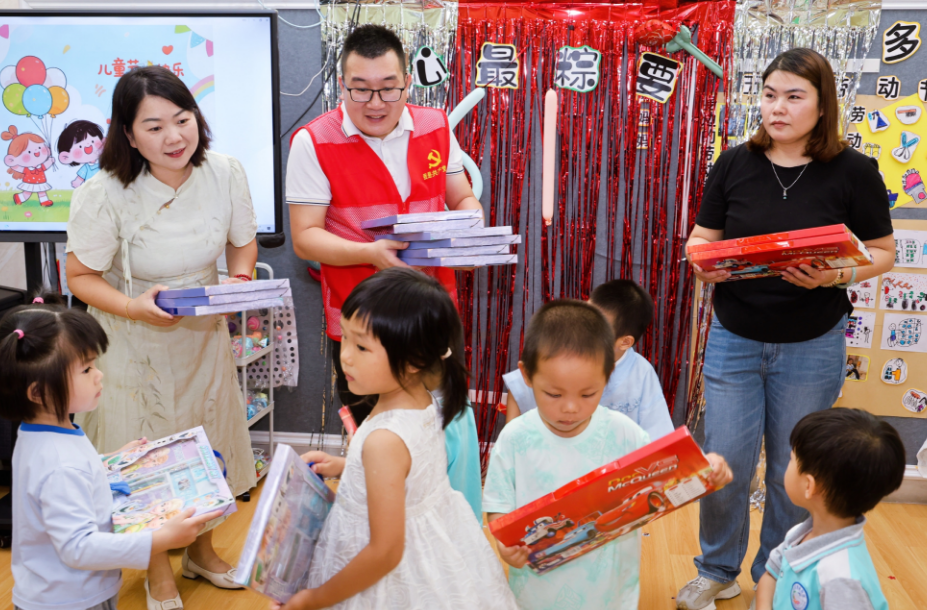 活动期间,广碧居委工作人员带着精心准备的文具礼盒走进幼儿园,将节日祝福送到孩子们手中。居委负责人亲切地与孩子们互动,鼓励他们勇敢追梦、快乐成长。这份来自社区的关爱,让孩子们的笑容更加灿烂。