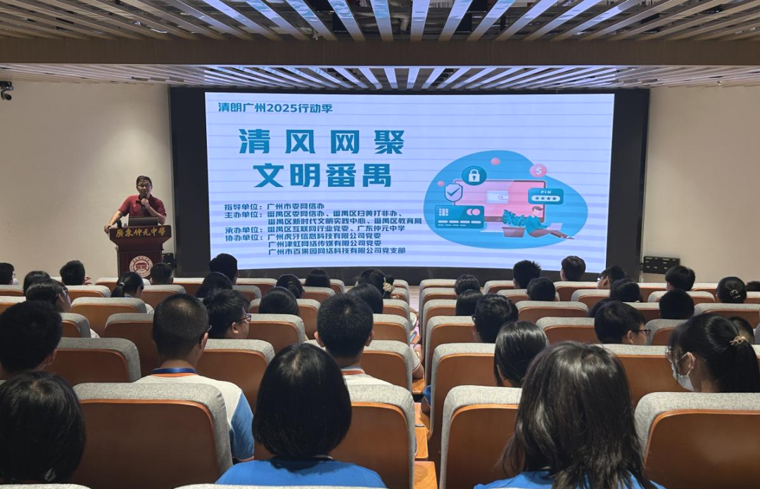 为进一步落实“清朗广州2025”行动季活动要求,强化涉未成年人网络不良内容治理,防范线上线下交织风险,在广州市委网信办的指导下,番禺区委网信办联合区扫黄打非办、区新时代文明实践中心、区教育局、广东仲元中学、广州番禺中学附属学校、虎牙党委、津虹(YY)党委、百果园党支部,开展了以“清风网聚、文明番禺”为主题的网络素养教育进校园活动。通过“专题讲座、主题班会”的宣教模式,着力构建网络素养教育“家校社”协同育人的模式,切实为未成年人健康成长筑牢网络安全防火墙。