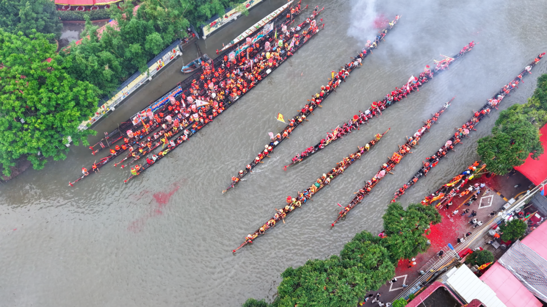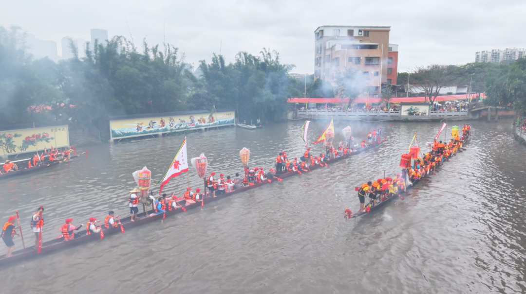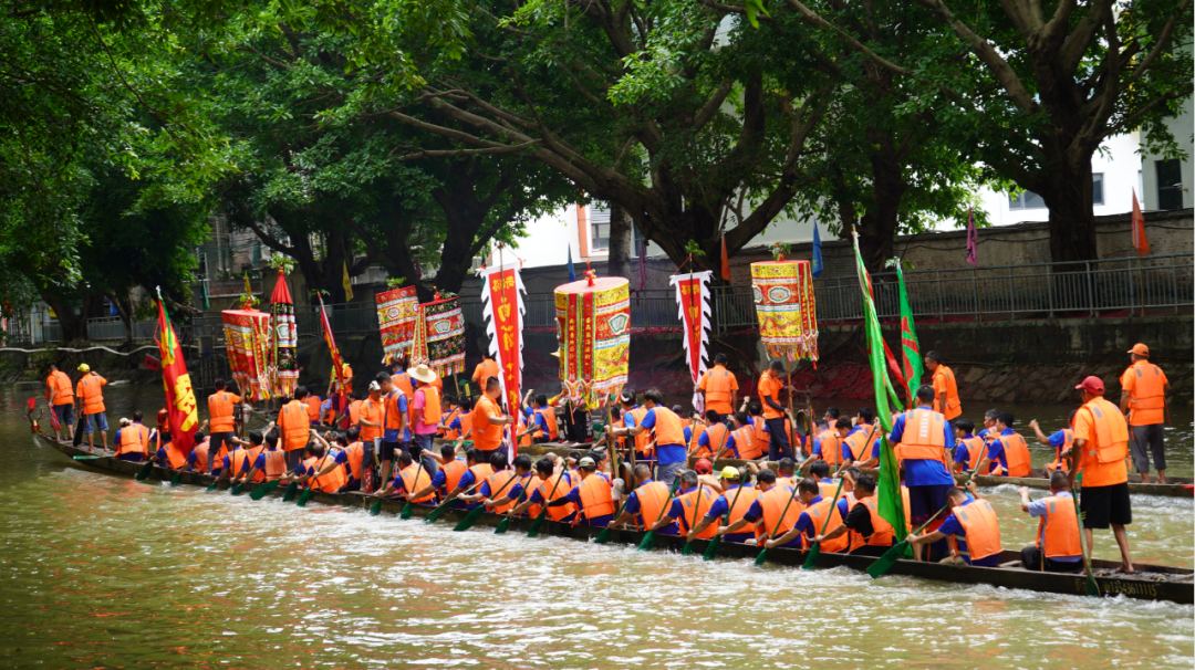 在番禺,端午节的龙舟活动不仅仅是简单的竞渡,它是一场包含着乡土风俗、多彩活动以及独特周边元素的文化盛事。从起龙、采青、点睛的庄重仪式,到龙船饼里包裹的兄弟情义,从龙舟“探亲”的水上礼仪,到千人围坐的龙船饭……当《赛龙夺锦》的乐声与桨声共鸣时,流淌千年的岭南血脉便在此刻苏醒。