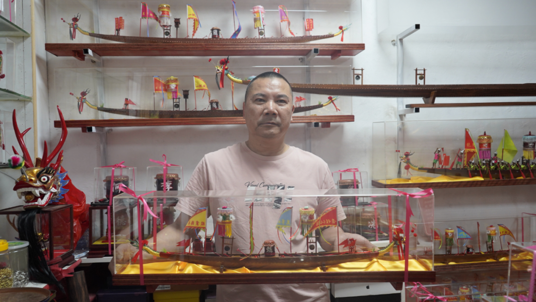 每年端午节临近,番禺上漖村的微型龙舟匠人卢志棠便忙得不可开交。各村或个人纷纷慕名前来订购微型龙舟,或私人收藏,或赠送他人,目的都是想将龙舟文化传承下去。