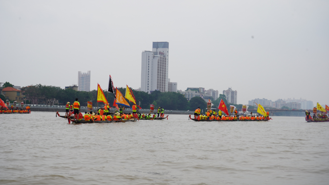 这一天是东乡村传统的龙舟“招景”日,来自南浦片的西一、西二、西三村,洛溪村、沙溪村,大石街的涌口村、大山村、桔树村,以及二沙、沥滘、石溪等地的兄弟村龙舟队,纷纷应邀前来三枝香水道趁景、探亲,共庆端午。