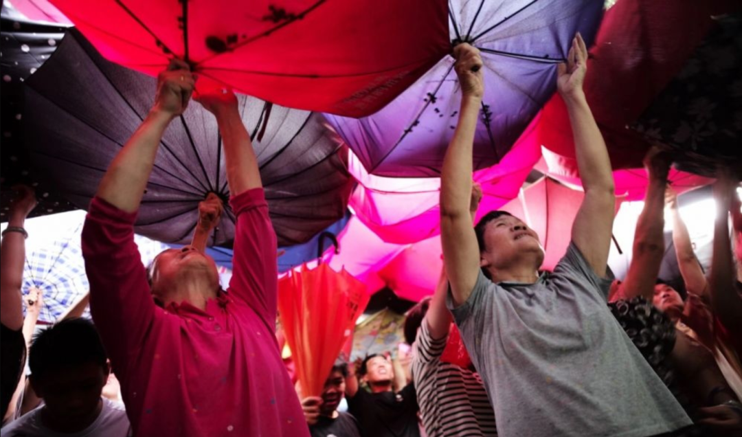 江面上彩旗飘扬,锣鼓声震天动地,村民赤脚撑起罗伞、彩旗,强哥从祠堂中取出威风凛凛的龙头、龙尾,安在龙船上。龙舟队划着龙舟来到河涌边,将一束禾苗系于龙头。“采青要选挂着露水的嫩秧,象征生生不息。”强哥手持榕树枝蘸珠江水洒向龙舟,为龙舟祈福。