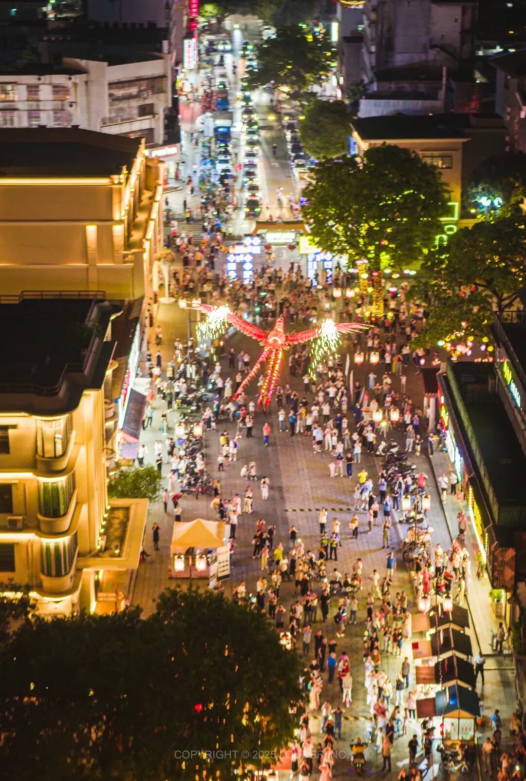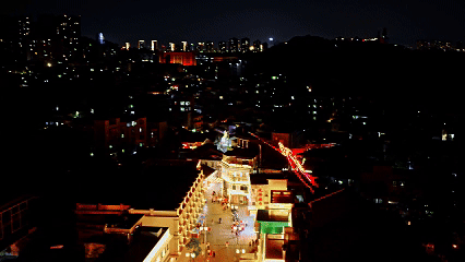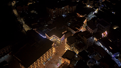 点亮古镇夜空。