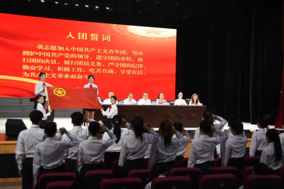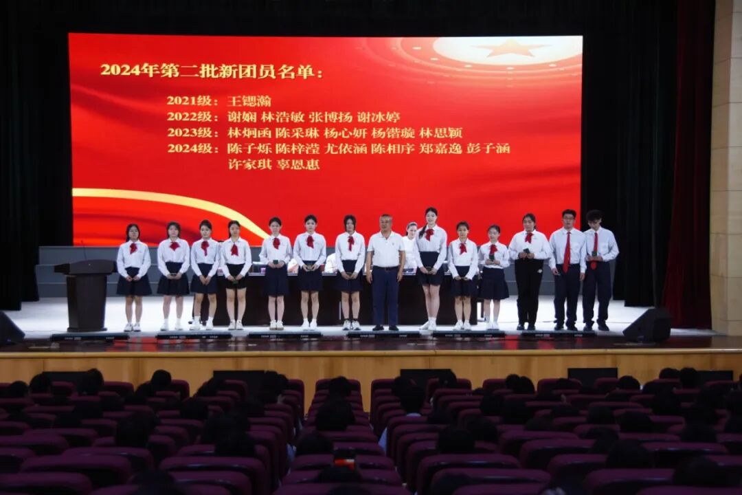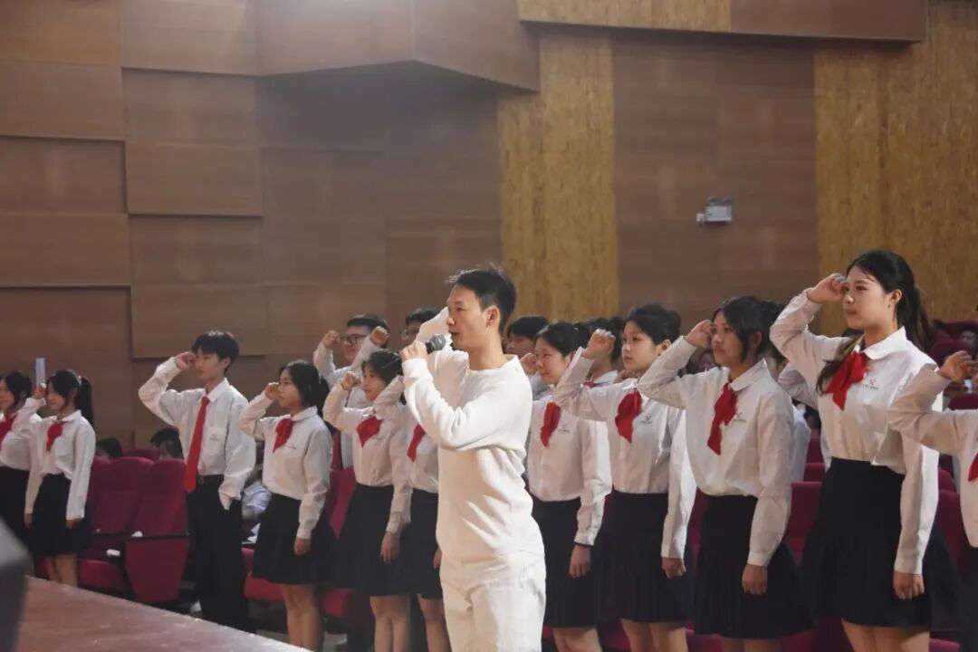 在团旗见证下,校团委委员周积明、郑少真带领新团员庄严宣誓。“我志愿加入中国共产主义青年团…… 为共产主义事业而奋斗!” 铿锵誓言响彻会场,彰显着新时代青年对党的忠诚、对共青团的承诺。