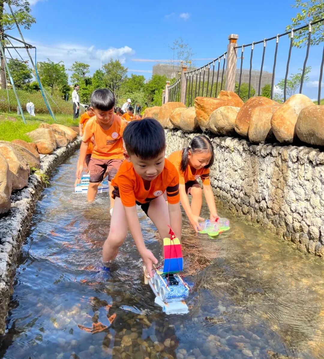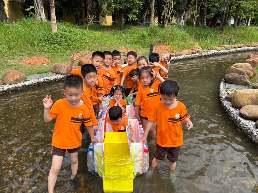 在捕捞区域,孩子们亲手打造小船,观察其在水中的漂浮、流动,在实践操作中感知物理与数学原理,深度锻炼逻辑思维与空间想象能力,让数学思维在趣味探索中茁壮成长。