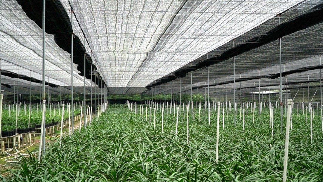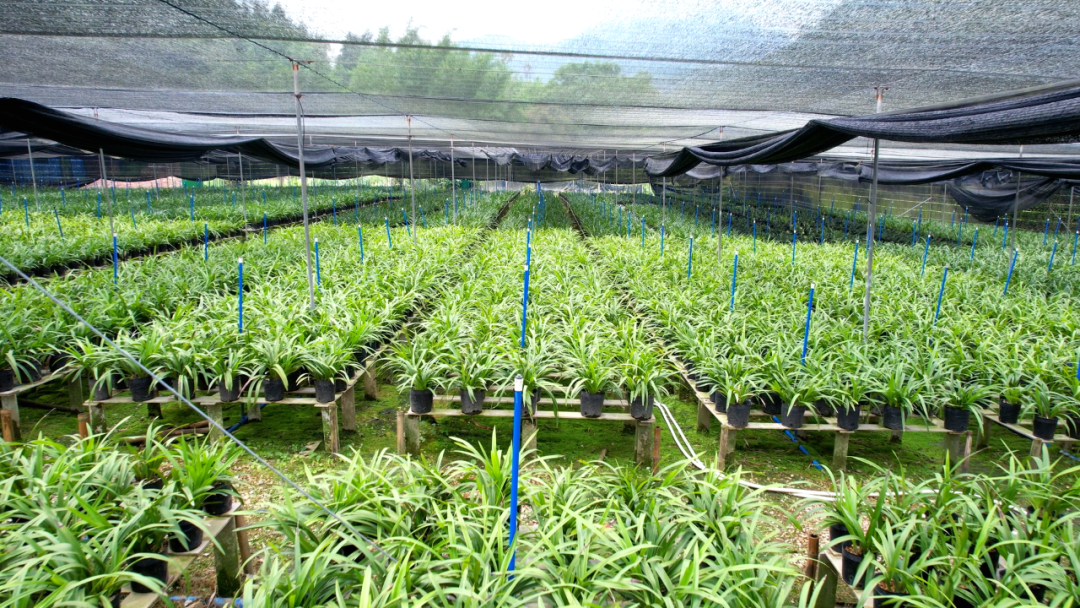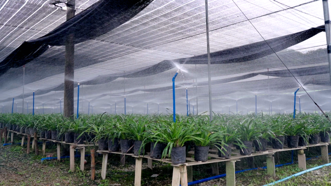 如今,李冠雄凭借科学的种植管理模式逐年扩大国兰种植面积,从最初1亩的种植规模逐步扩展至16亩,且亩产量可观,平均每亩可种植5000-6000盆兰花。与此同时,李冠雄引入现代化自动喷淋设备,大大提升了国兰种植产业的自动化与智能化水平,加速推动传统种植向现代化高效农业转型升级。