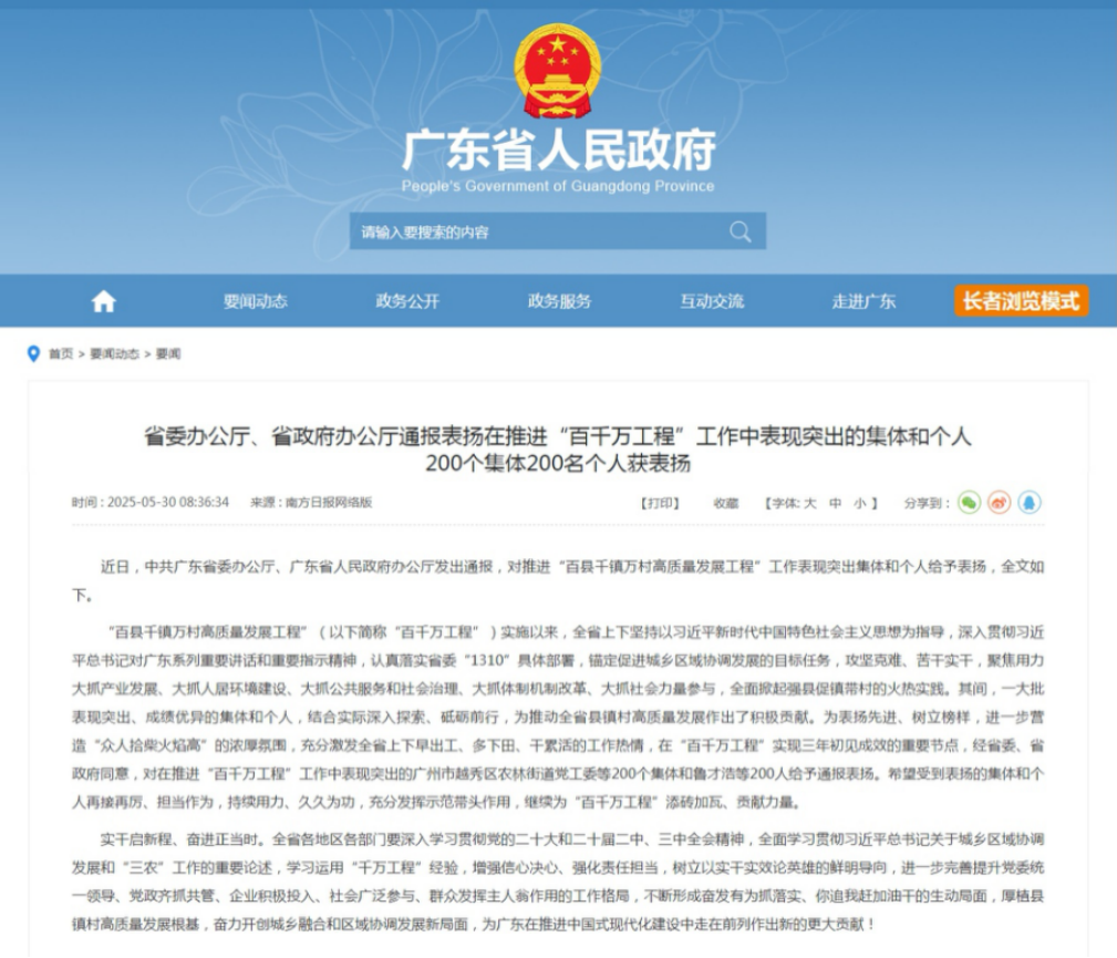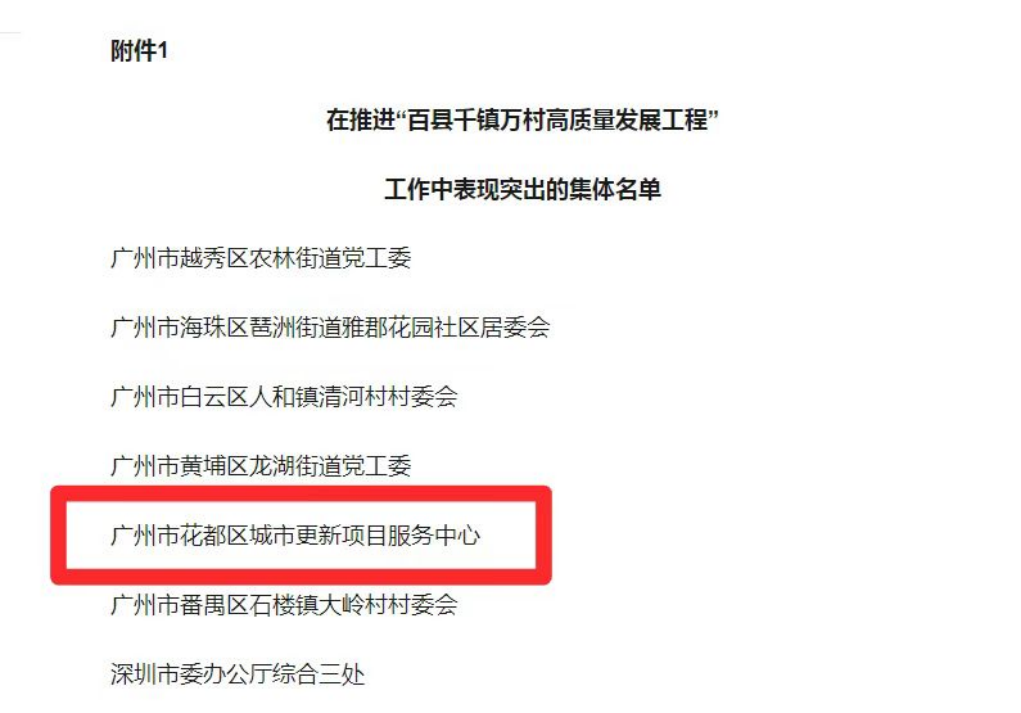 喜讯传来!5月29日,2025年省委农村工作会议暨深入实施“百县千镇万村高质量发展工程”推进会召开,会上通报了在推进“百千万工程”工作中表现突出的集体和个人名单,200个单位、200人获通报表扬。花都区城市更新项目服务中心光荣上榜,被列入“在推进‘百县千镇万村高质量发展工程’工作中表现突出的集体名单”!