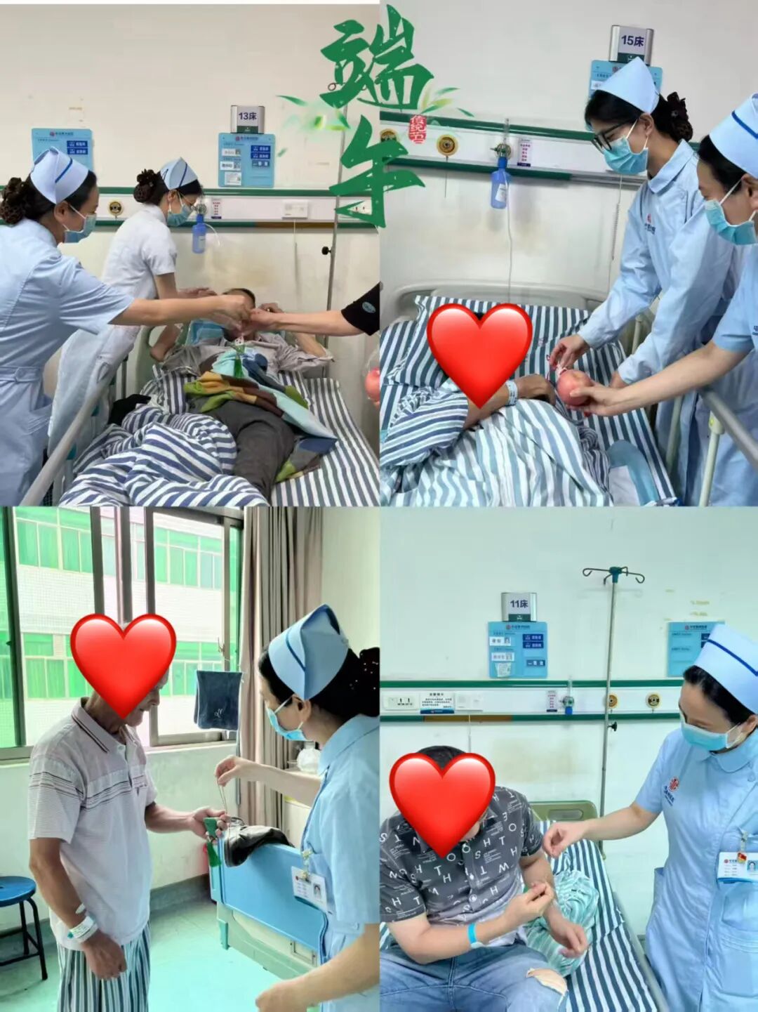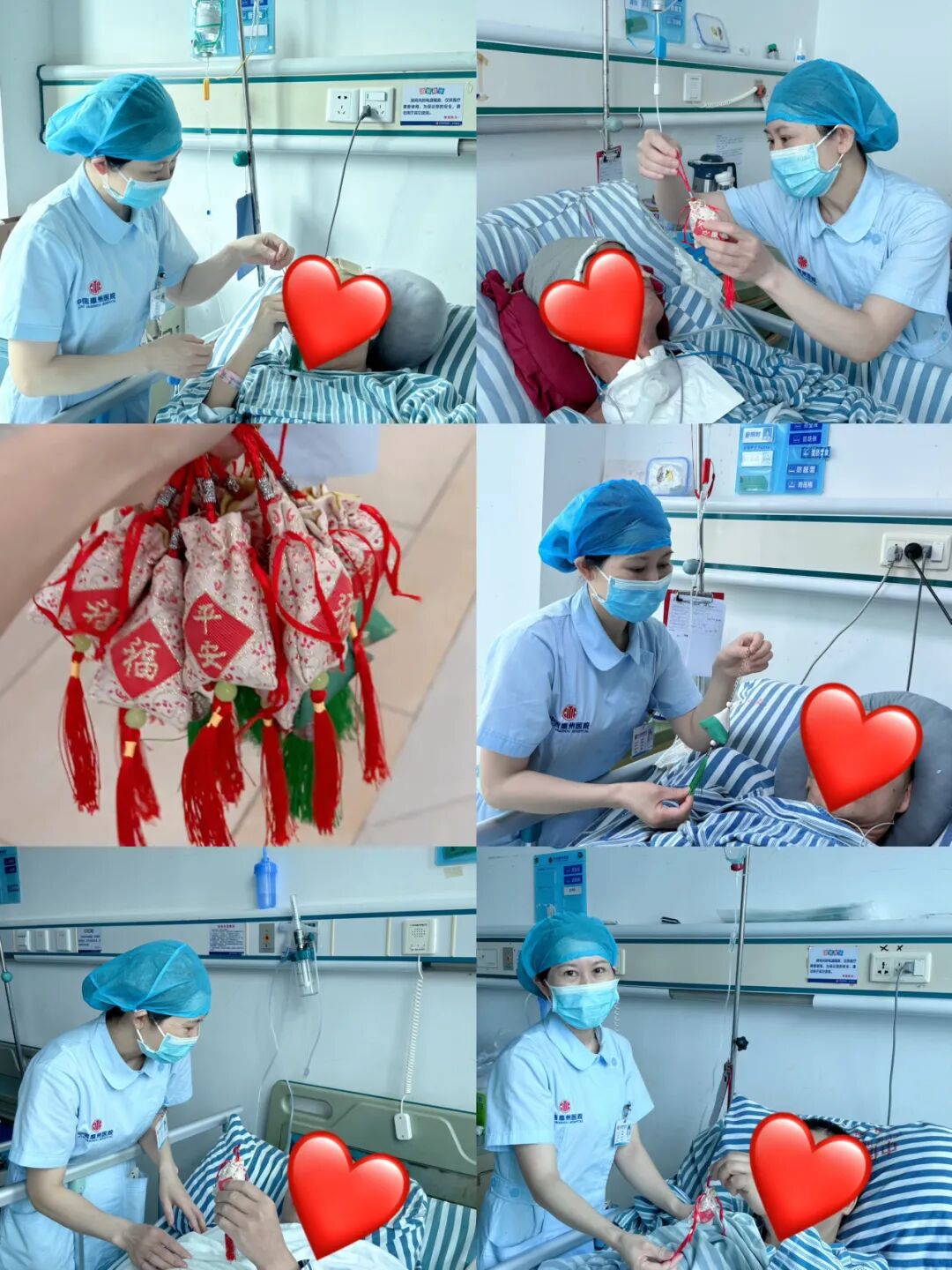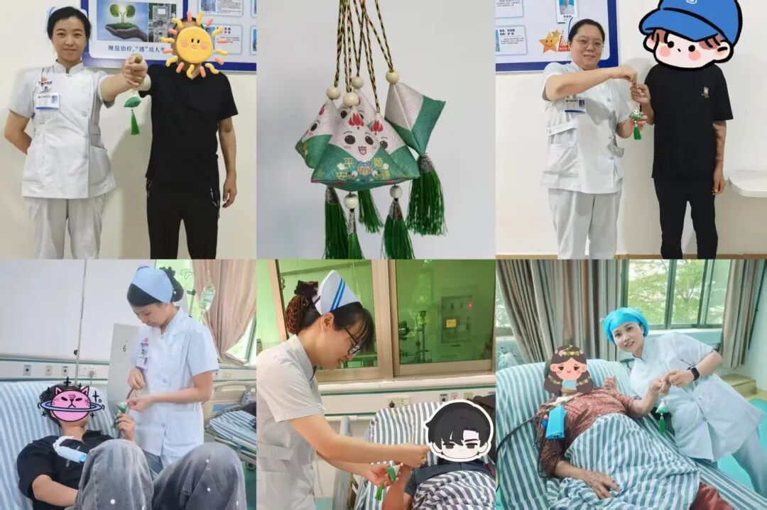 “端午安康!愿这香囊伴您早日康复!” 医护人员轻声祝福,将香囊递到患者手中。