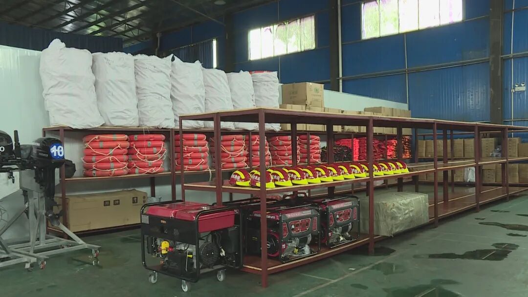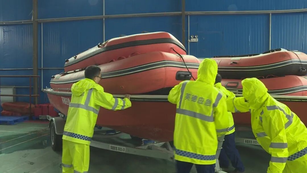 记者看到工作人员正有序清点冲锋舟