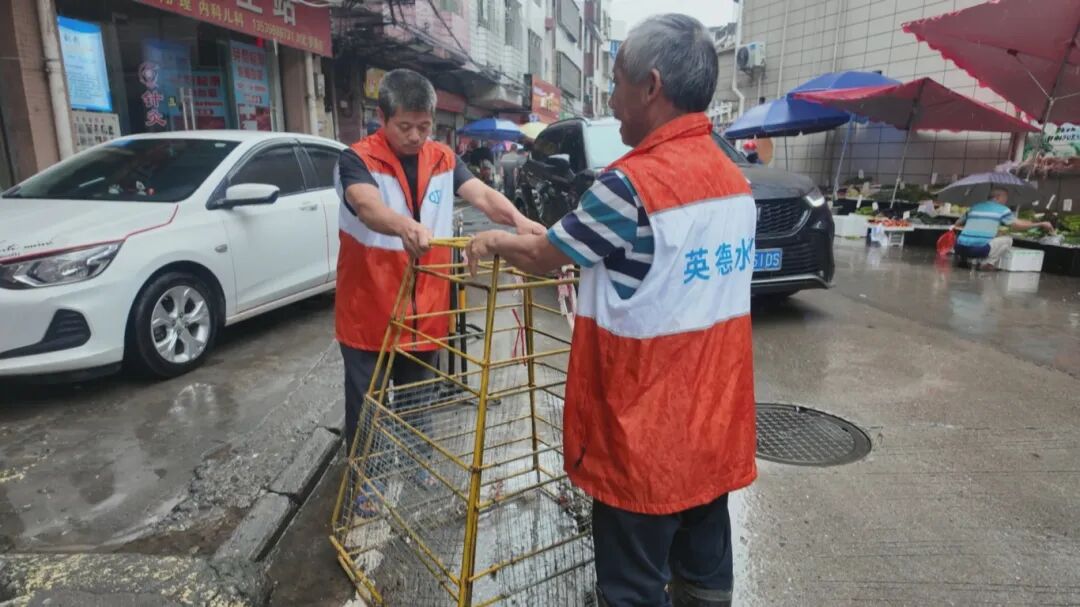 “发现有垃圾堵塞,我们就清理垃圾。假如实在太大雨,就拿围栏拦着两边,不让人车通行,打开井盖排水。太大雨,实在排不完,就启动抽水机。”英德市区易涝点东片区现场负责人邓伟厚介绍说。