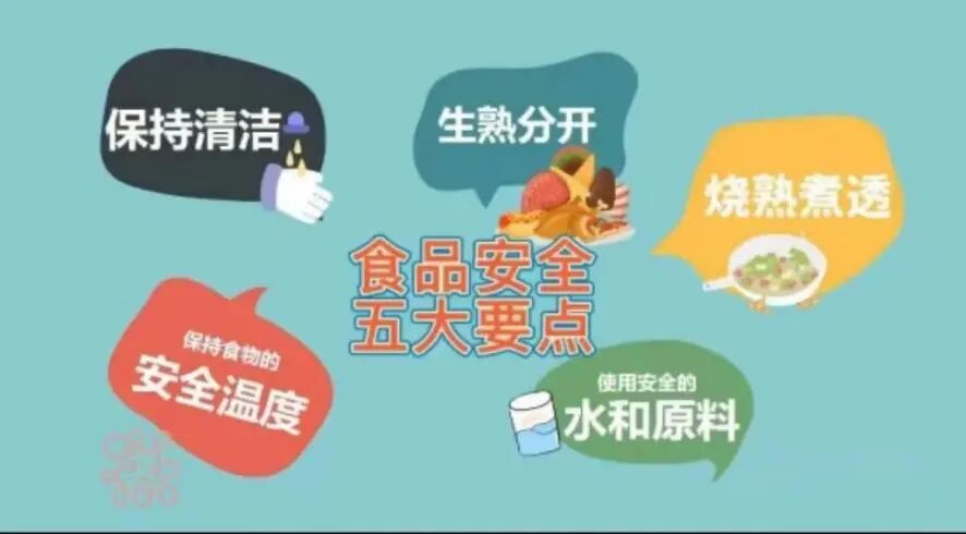 4.细菌滋生需防范:肉、蛋和水产品等,要彻底加热才能食用。餐具和直接接触食品及其原料的工具要消毒后再使用。