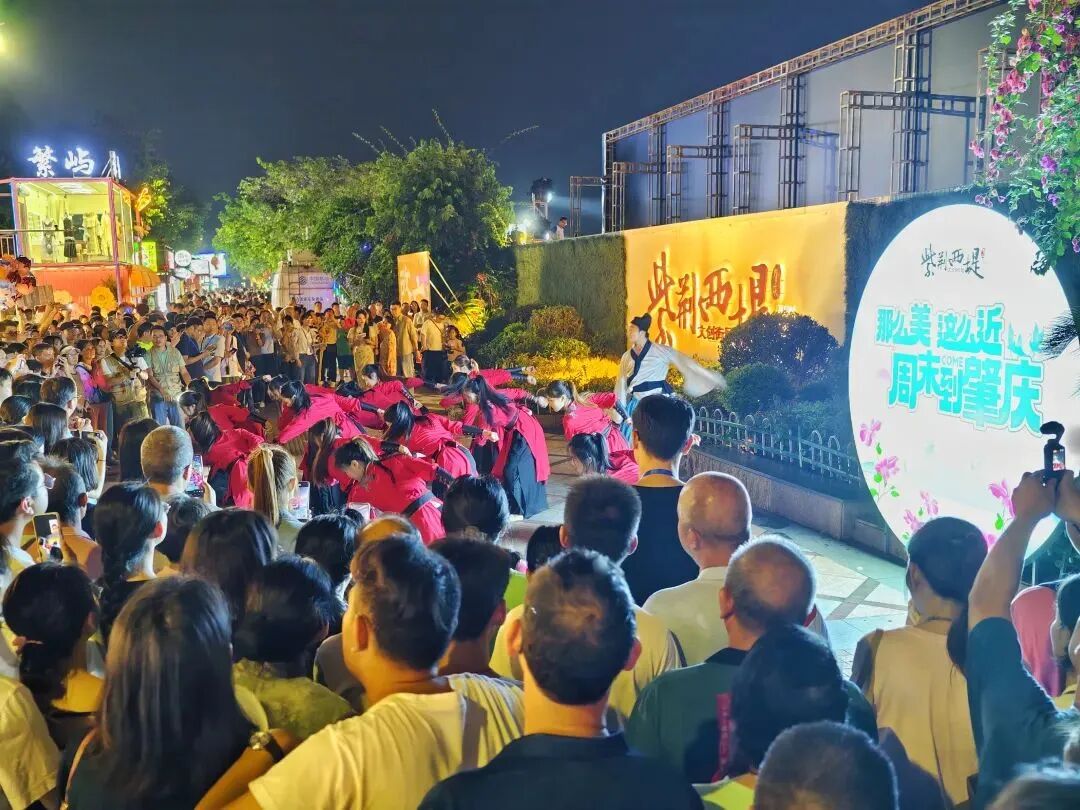 5月31日晚,广东文旅“粤式新龙舟 绽放大湾区”系列活动之肇庆端午节民俗文化展演活动在紫荆西堤文创街区上演,露天剧场上,鱼龙舞、状元舞、四会山歌等肇庆特色非遗项目通过人民日报直播走向全国,网友弹幕刷屏:“这才是文化自信的打开方式!”
