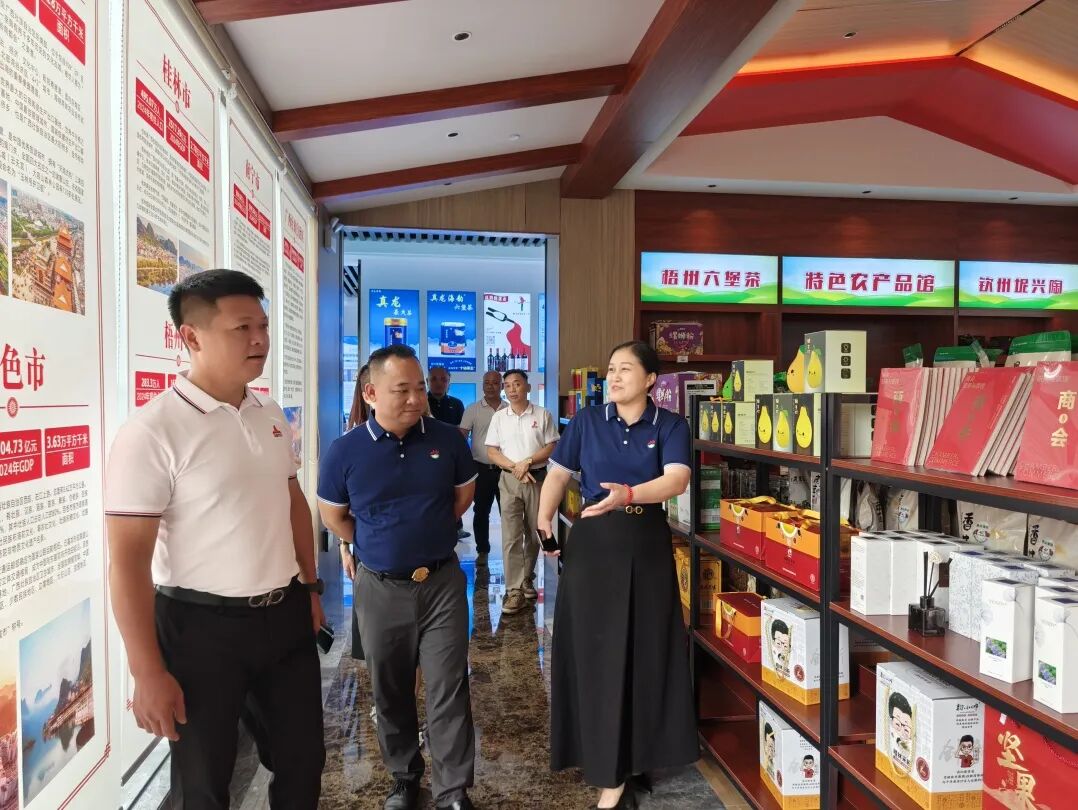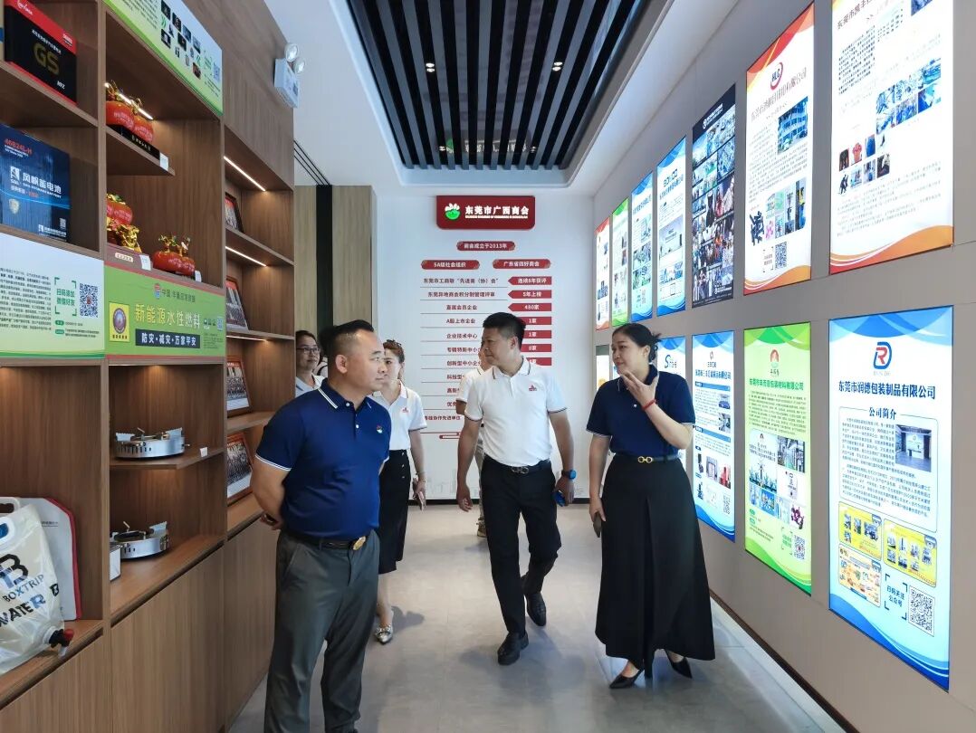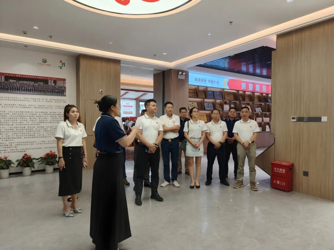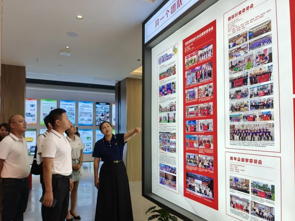 在商会会长肖明海和秘书长张琳的引领下,来访一行参观我商会阵地建设,了解我商会发展历程、所获荣誉、领导团队及活动风采,重点介绍了商会的企业展厅及特色农产品馆。
