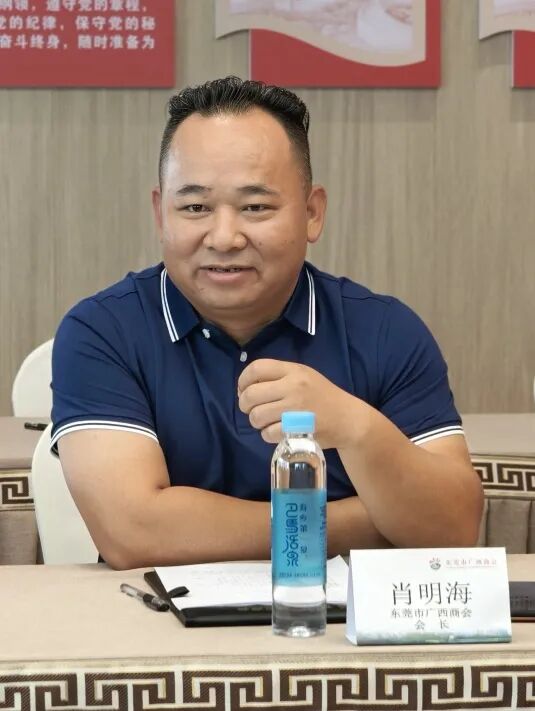 我商会肖明海会长代表东莞市广西商会对黄建华会长一行的到来表示最诚挚的欢迎。他高度赞赏抚州商会鲜明的行业特色和在莞取得的成就,并分享了广西商会的发展理念与核心工作。