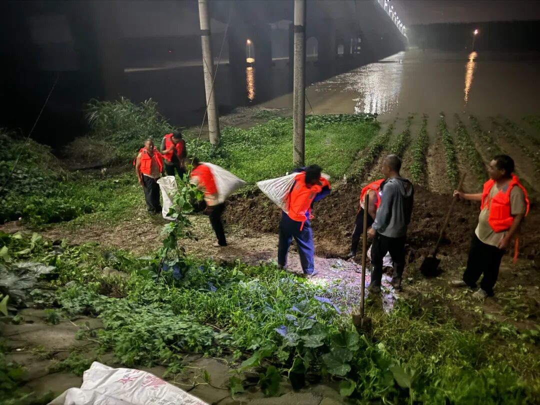 安徽省淮南市潘集区高皇镇群众夜间装设沙袋