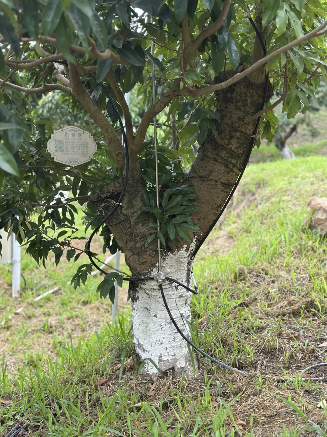 在樟木头岭南荔园果园里,水肥一体化喷淋系统正为荔枝树进行自动灌溉。管理人员通过手机APP精准控制着灌溉和施肥的时间、流量等,把水分、养分定时定量,按比例直接供给每一颗甜蜜果实。
