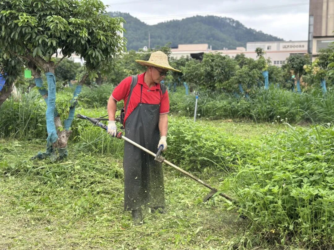 荔枝树旁的杂草不仅会与荔枝树争夺养分,还会助长病虫害的传播,因此除草工作非常重要。岭南荔园采用“割草机+木屑覆盖”相结合的方式进行除草,保护好原有的土壤生态环境,确保荔枝树在花期集中养分、促进果实的健康成长。