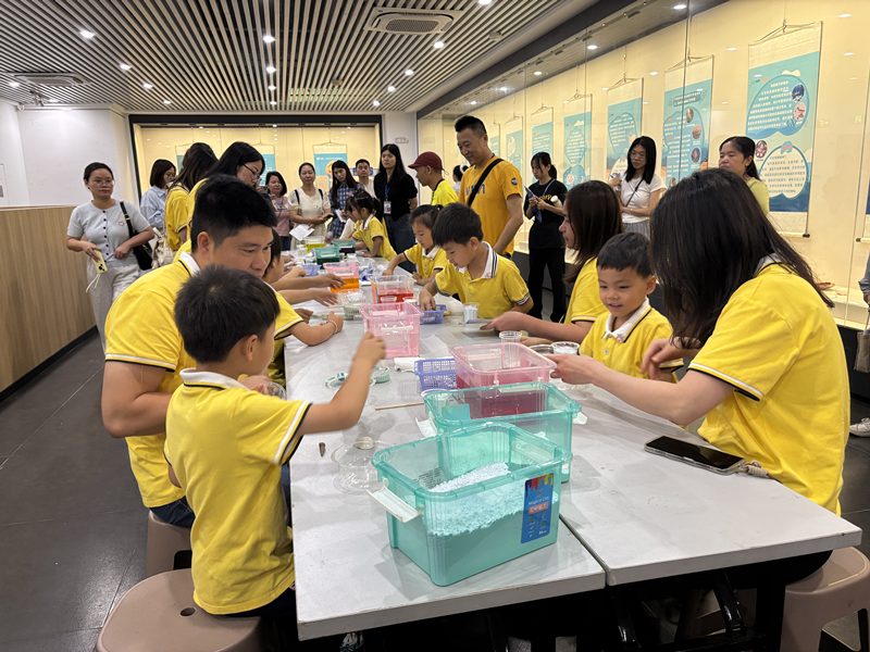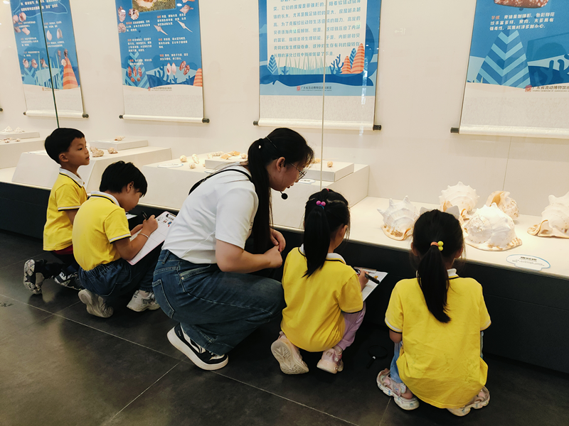 在博物馆的展厅中,广州市从化区第三幼儿园的孩子和家长们,不仅欣赏到形态各异、色彩斑斓的贝壳标本,还通过互动展示区深入了解从化的人文风情、历史文化。