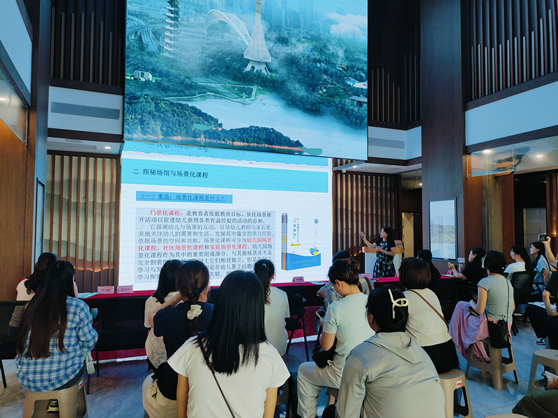 广州市从化区教师发展中心幼教教研员谭闽东老师分享的:场馆赋能美育,共融促幼儿发展中强调要深度挖掘场馆资源,推动艺术融入生活,并呼吁加强家、园、社协作,共探社区场馆赋能艺术教育路径。