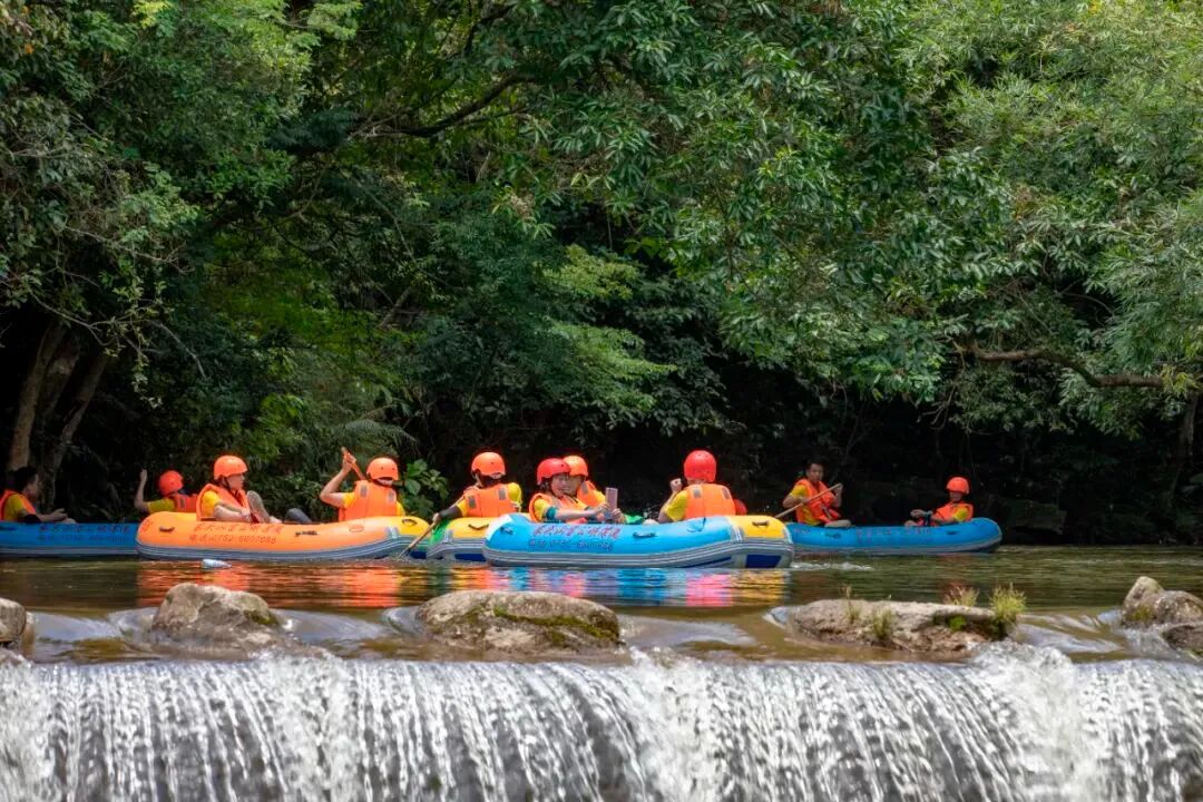 “春踏绿谷,夏玩漂流,秋品山珍,冬泡温泉”